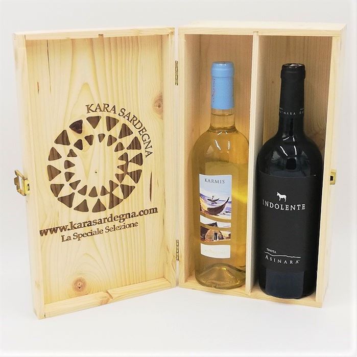 Nella confezione troverai due tra i migliori vini sardi all'interno di una raffinata