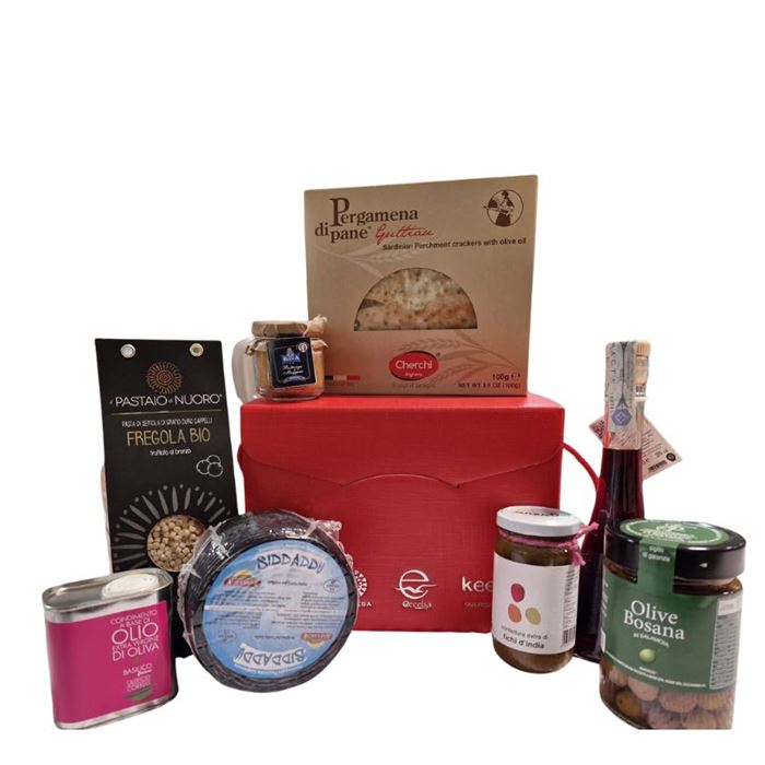 PUO´CONTENERE UNA SELEZIONE 5/6 PRODOTTI TIPICI SARDI. Elegante confezione in cartone rigido da regalare per festeggiare i tuoi momenti speciali. Su richiesta è possibile comporre la confezione con i tuoi prodotti preferiti, scelti sul nostro sito.Come procedere? Una volta inseriti a carrello...