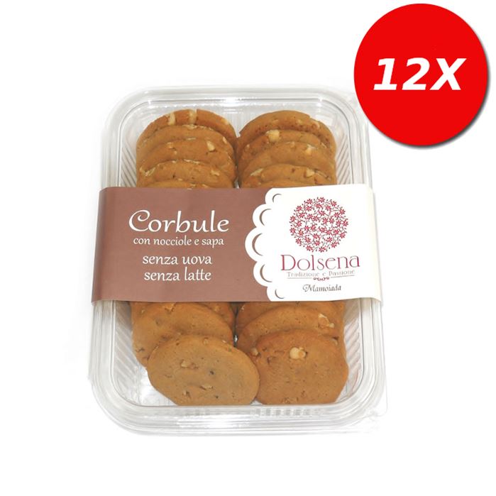 Da un´antica ricetta sarda un biscotto senza latte ne uova, ideale per coloro che vogliono gustare uno snack leggero, senza rinunciare alla golosità del dolce.Ingredienti: farina di GRANO, zucchero, NOCCIOLE (11%), mosto d'uva cotto (10%), strutto, aroma naturale di arancio, agente lievitante...