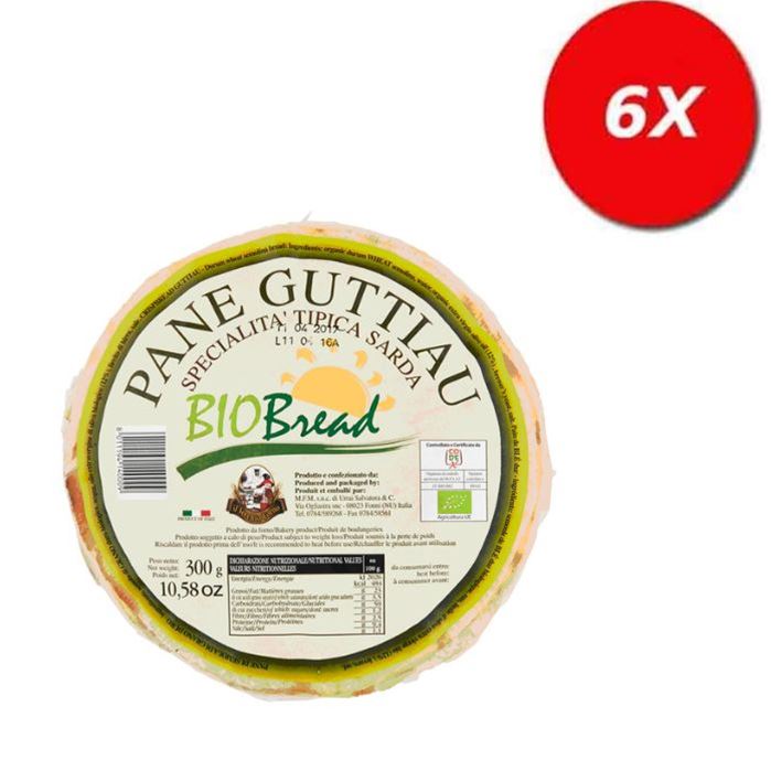 Pane Guttiau da agricoltura biologicaIngredienti: semola di GRANO duro biologica, acqua, olio extravergine di oliva biologico (12%), lievito di birra, sale.Caratteristiche: pane tipico sardo cotto e dorato al forno di forma circolare.Tempi e modalità di conservazione Si conserva a temperatura...