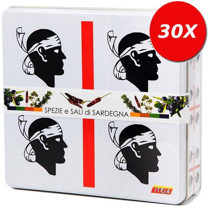 Quattro mori - cofanetto sali e spezie di Sardegna, elegante cofanetto in latta (misura cm 21x20x6) contenente spezie e sali di Sardegna: