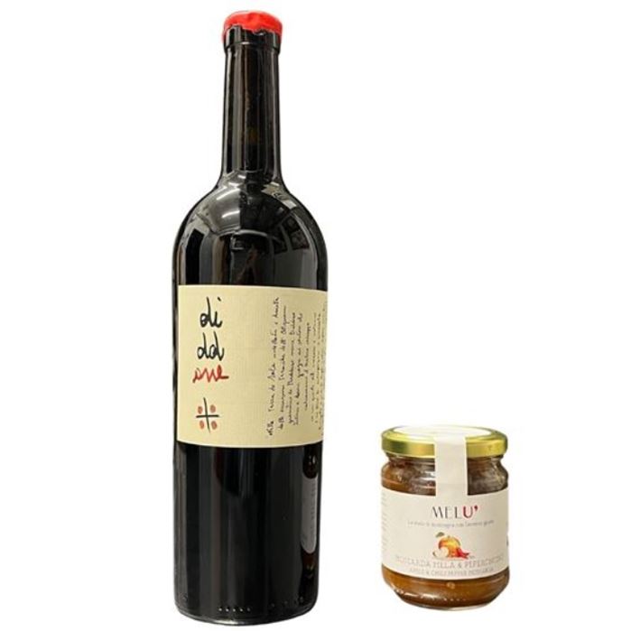La proposta combina eleganza e gusto per arricchire gli incontri conviviali. Il set include una bottiglia di Diddone e una deliziosa mostarda di mele di montagna, per esaltare l'esperienza culinaria.