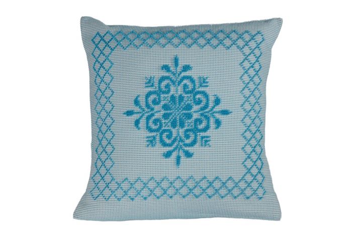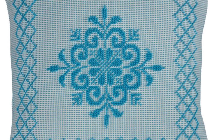 Cuscino Pistoccu con cornice lavorato a mano con tecnica pibiones.