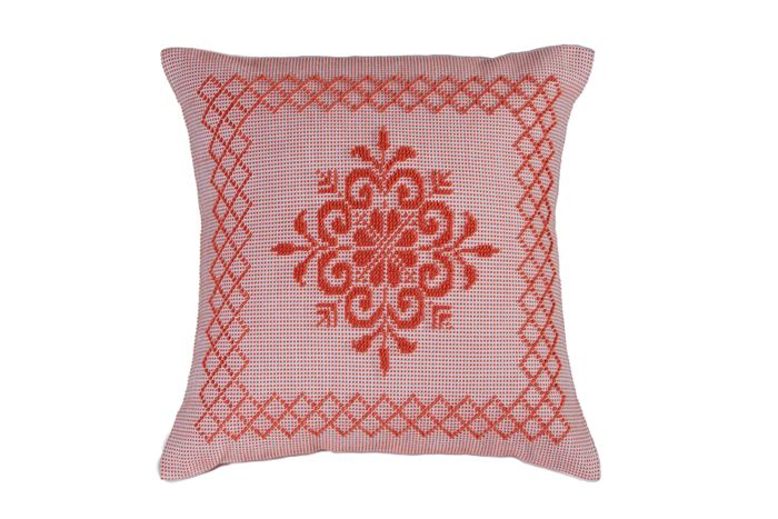 Cuscino Pistoccu con cornice lavorato a mano con tecnica pibiones.