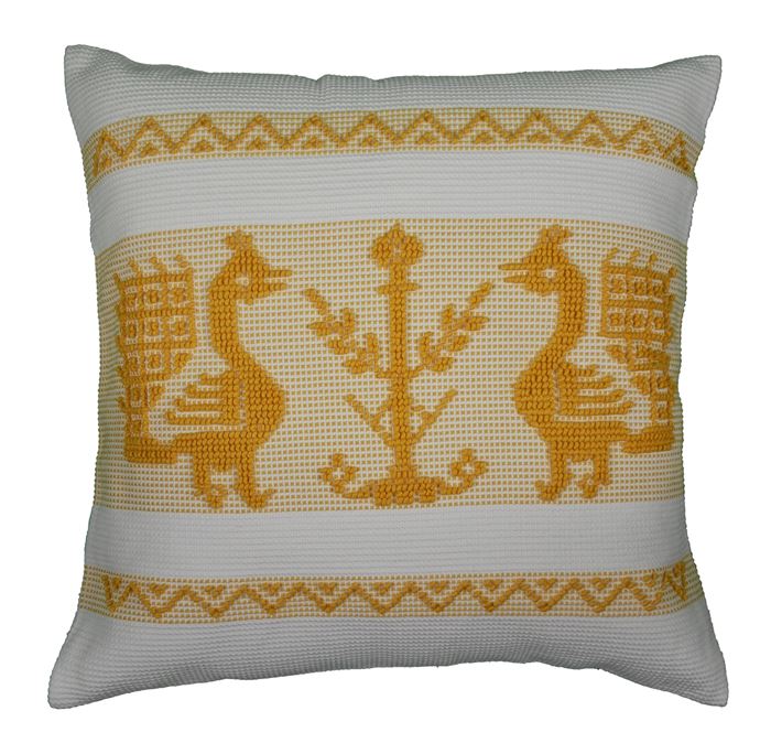 Cuscino Pavoncelle lavorato a mano con tecnica pibiones.