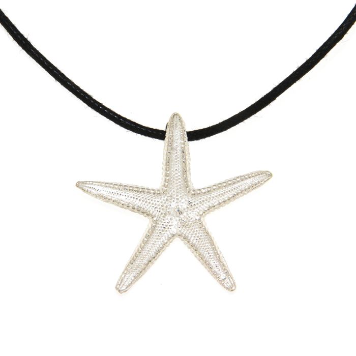 Consegna a € 9,99Ciondolo in argento 925/1000 a forma di stella marina, realizzato artigianalmente con la tecnica del calco dal naturale e della fusione a cera persa, rifinito e assemblato a mano. Il cordoncino in cotone cerato nero, regolabile in lunghezza, è compreso nel prezzo.
