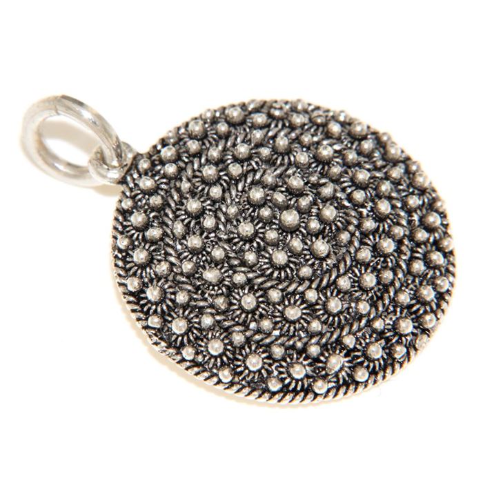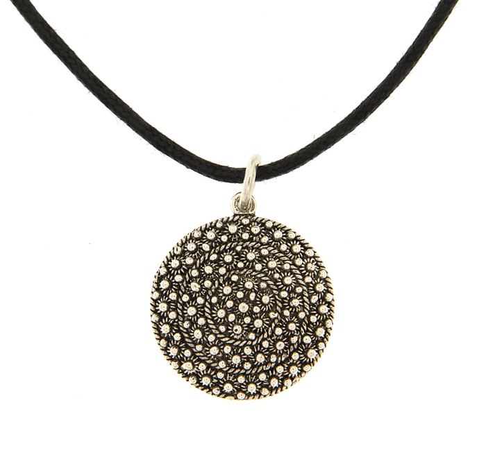 Consegna a € 9,99Ciondolo in argento 925/1000 realizzato artigianalmente con la tecnica della cera persa e filigrana sarda a nido d'ape, rifinito e assemblato a mano. Il cordoncino in cotone cerato nero regolabile in lunghezza è compreso nel prezzo.