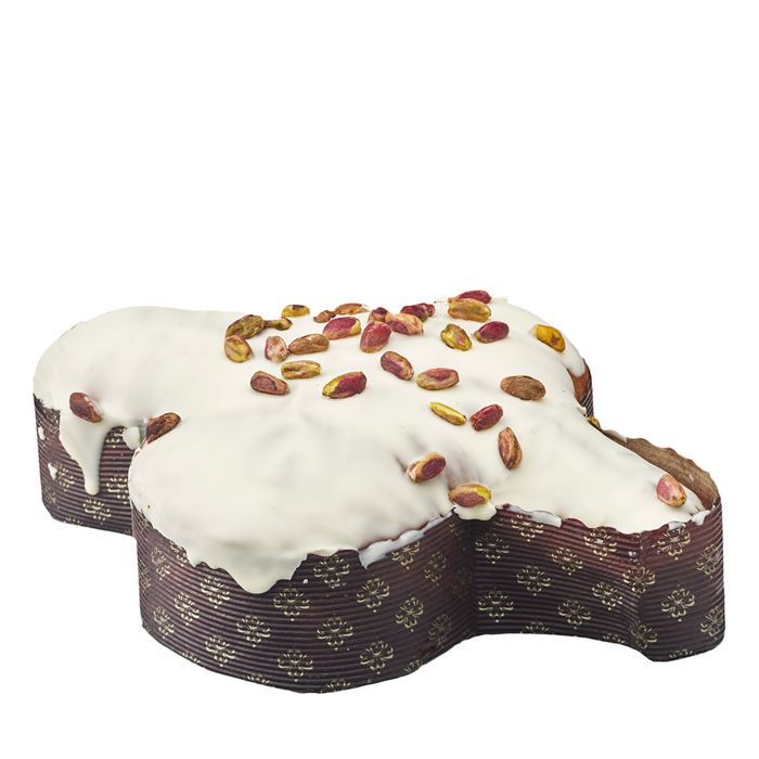 Consegna a € 6,89Colomba di pasticceria ricoperta di cioccolato bianco e pistacchi con vasetto da 200g di crema al pistacchio.