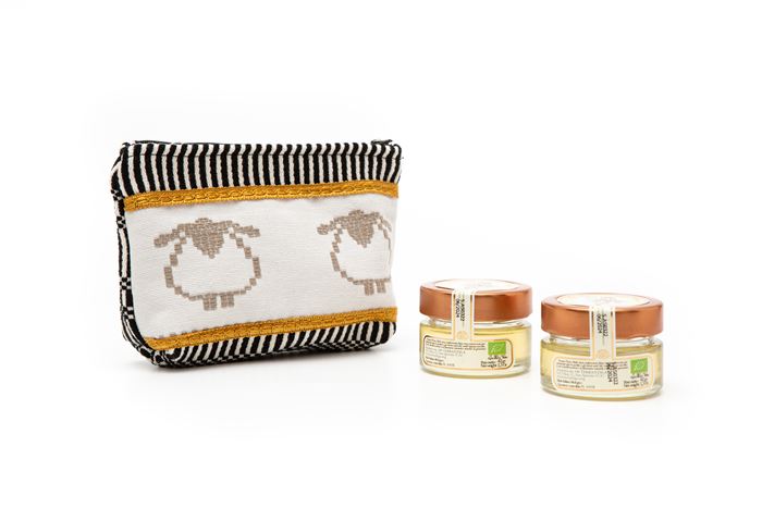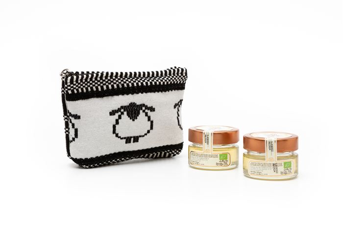 Consegna a € 7,93Confezione regalo con due vasi di Miele di Asfodelo Bio da 43g cadauno, racchiusi in una Pochette realizzata a mano in tessuto bisaccia con decoro in vari colori.