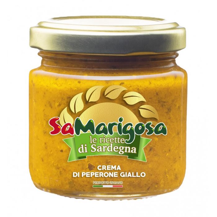 I carnosi peperoni gialli, provenienti dai campi assolati della Sardegna, lavorati dal fresco e ricettati per ottenere una crema dal sapore avvolgente, delicatamente agrodolce. E' utilizzata in cucina per condire primi piatti e accompagnare i secondi di carne e pesce, e creare originali tartine da aperitivo.