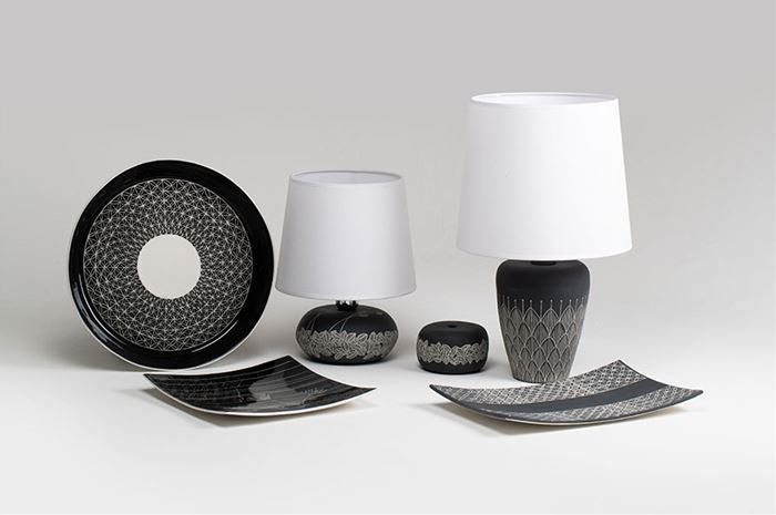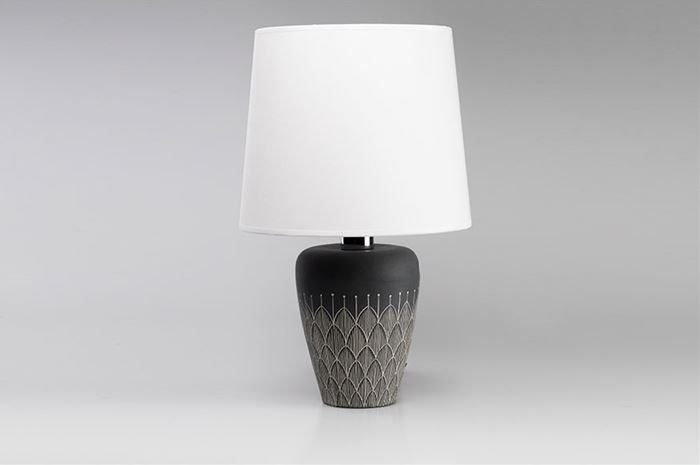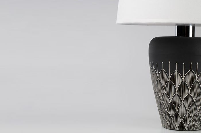 La sua dimensione media la rende adatta a tutti gli ambienti. La decorazione è incisa con la tecnica sgrafito su uno strato di ingobbio nero ed Il suo paralume, in cotone bianco è stato realizzato da un artigiano in Sardegna.
