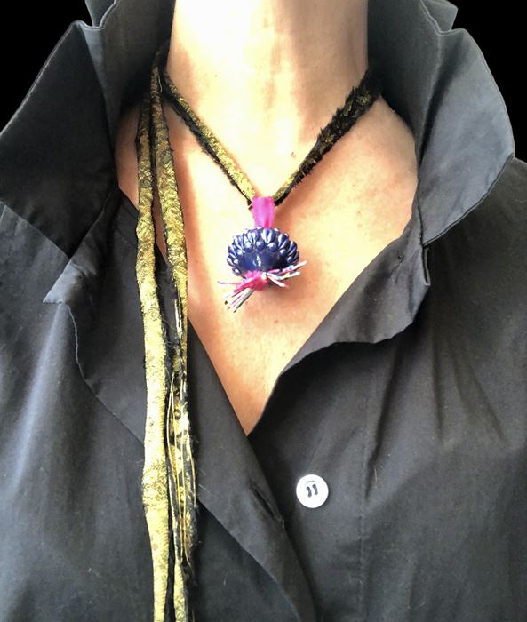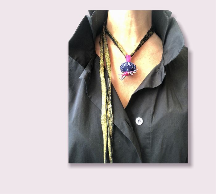 Frutto di una rivisitazione del caratteristico ornamento del costume tradizionale sardo, solitamente lavorati in filigrana d'oro e d'argento, sono reinterpretati e proposti in diversi modelli e varianti cromatiche. Impreziositi con filati e tessuti pregiati, diventano ciondoli, bottoni e anelli, oggetti dal forte valore identitario, declinato con gusto moderno e sofisticato.