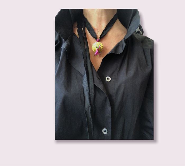 Frutto di una rivisitazione del caratteristico ornamento del costume tradizionale sardo, solitamente lavorati in filigrana d'oro e d'argento, sono reinterpretati e proposti in diversi modelli e varianti cromatiche. Impreziositi con filati e tessuti pregiati, diventano ciondoli, bottoni e anelli, oggetti dal forte valore identitario, declinato con gusto moderno e sofisticato.