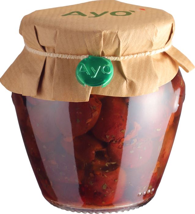 Lista degli ingredienti: Olive denocciolate 62%, Olio di semi di girasole, Olio extravergine di oliva, Pomodoro secco, Prezzemolo, Aglio, Sale. Correttore di acidità: Acido citrico e Acido lattico.