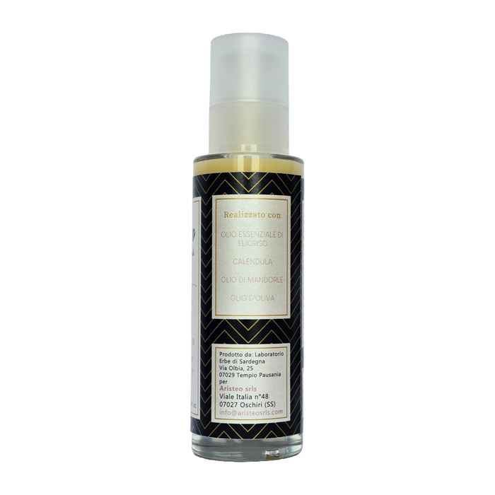 A base di Olio essenziale di Elicriso, Calendula , Olio di mandorle dolci e olio d´oliva è Indicata per pelli secche e delicate.
