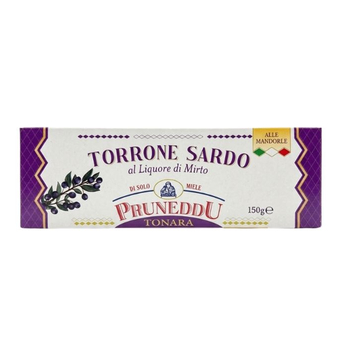 Ingredienti: MANDORLE 50 %, miele, liquore di mirto sardo (infuso idroalcolico di bacche di mirto, zucchero min 2%), aromi, albume d'UOVO, ostie