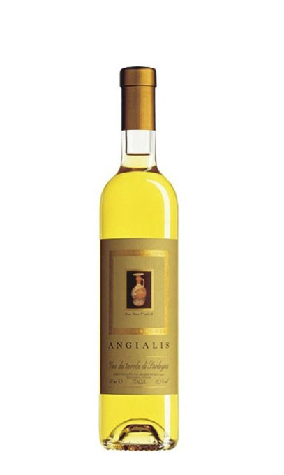 Consigli e accostamenti: angialis è un vino che accompagna i dolci e rappresenta anche il bicchiere dell´ospitalità, e dell´amicizia in qualsiasi ora della giornata.Caratteristiche generali colore giallo paglierino intenso, molto caratteristico dei vini dolci da uve surmaturate in vigna e ai raggi del sole; profumo ricco di aromi primari assai intensi e marcatamente mediterranei. Caratteri terpenici tipici del Nasco; sapore rotondo, amabile o quasi dolce, grasso e con carattere di sapidità che richiama l´aroma primario assai spiccato e intensamente terpenico.Si conserva per decine di anni in bottiglia, migliora solo col tempo.