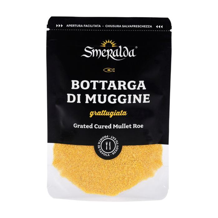 Bottarga di muggine grattugiata. Profumata, avvolgente, decisa. La bottarga di muggine è un prodotto speciale che appartiene alla storia antica della Sardegna. Si narra che, più di 3000 anni fa, i naviganti Fenici arrivarono nelle coste della nostra isola e, da loro, imparammo l’arte della salagione e della stagionatura delle sacche ovariche del muggine. Oggi, dopo un'accurata selezione e un minuzioso controllo manuale e visivo, soltanto le uova di qualità superiore vengono lavorate con cura, una a una. Rispettiamo la tradizione ma ci avvaliamo di moderne tecnologie per garantire il miglior processo produttivo. Una bottarga eccellente si riconosce osservandone anche il colore: se ha un colore ambrato, uniforme o con leggere sfumature siamo davanti a un prodotto dalla qualità impeccabile. Al palato, il suo sapore è deciso, avvolgente e sapido, con un netto richiamo al mare.