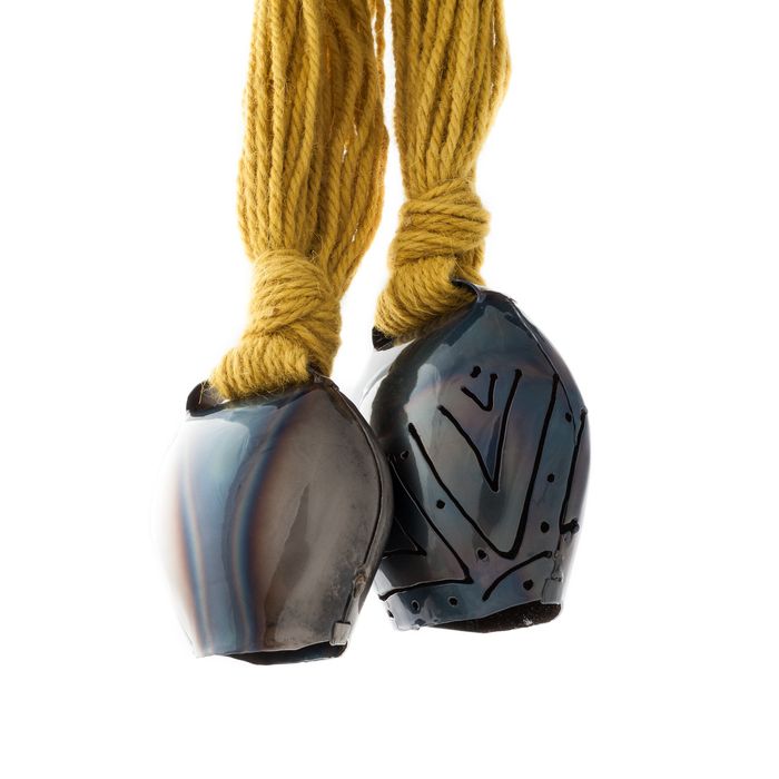 Campanacci decorativi in ferro forgiato a mano, sospesi da matasse di fili in lana policroma. Oggetto simbolo della cultura ed identità isolana, sono proposti come decorazioni dalle forme semplici ma di forte impatto visivo.