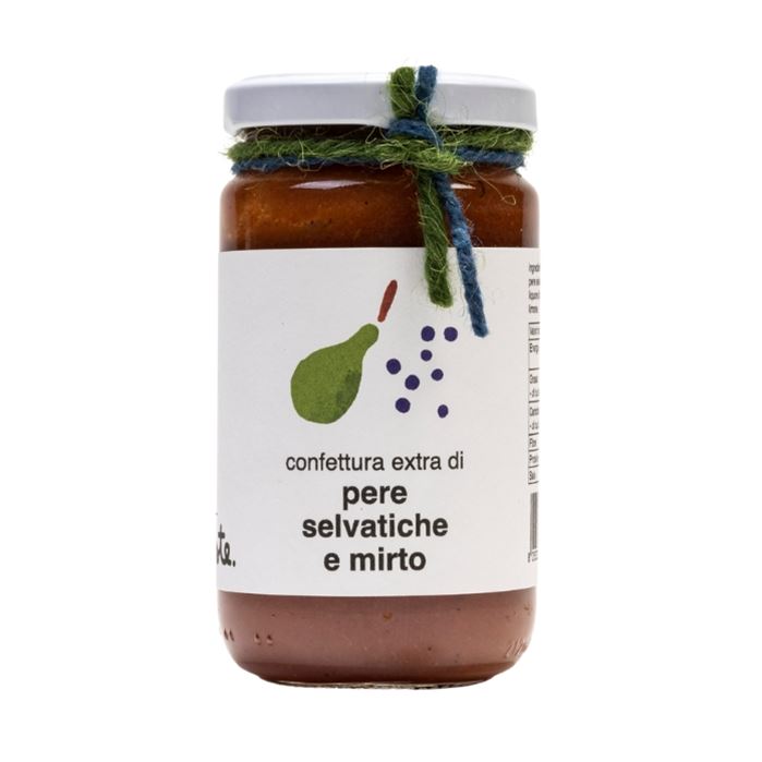Preparazione: dopo essere state accuratamente lavate, le pere vengono sminuzzate e messe a bollire insieme al succo di limone e allo zucchero. In fase finale si aggiunge la purea di mirto.