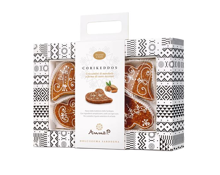 I ´Coriccheddos´ Anna P. son pregiati croccanti artigianali fatti con mandorle e zucchero, dalla caratteristica forma a cuore decorata a mano. Per la loro originalità e bellezza vengono preparati per le ricorrenze importanti.