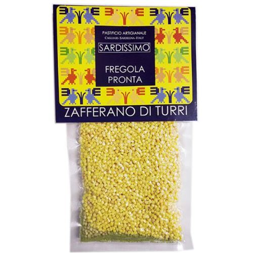 Fregola sarda pronta allo zafferano di Turri, confezione ideale per due persone.