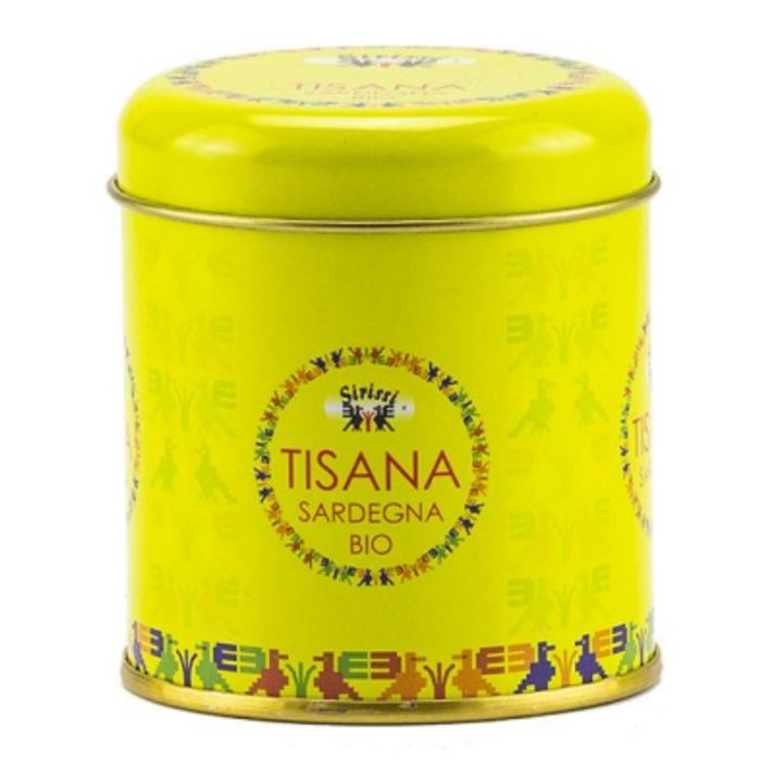 Cofanetto porta tisane in latta (misure 6 x 8 cm) contenente 12 filtri di tisana Bio al limone e zafferano di Sardegna.