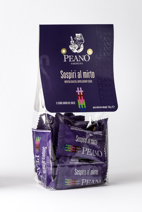 Ingredienti: MANDORLE (27%), zucchero, miele, sciroppo di glucosio, pasta di mirto (2,7%): (bacche di mirto, zucchero). copertura (33,5%): cioccolato (pasta di cacao, zucchero, burro di cacao, emulsionante: lecitina SOIA, aroma naturale di vaniglia, cacao min. 62%).