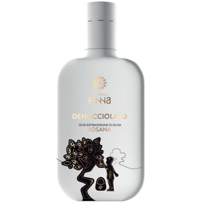 CARATTERISTICHE ORGANOLETTICHE: l'olio denocciolato ha un'acidità più bassa ed un contenuto di polifenoli quasi doppio rispetto ad un olio tradizionale franto col nocciolo. Dal colore giallo oro tenue e limpido; si presenta con profumi altrettanto tenui e delicati di oliva con note di frutta bianca che rimandano alla banana e alla mela. Armonico ed equilibrato al gusto, pur con sensazioni fruttate assai decise e marcate, oltre che persistenti e nette anche in chiusura, si evidenzia per eleganza e finezza. La sensazione di amaro e piccante, decisa ed equilibrata, unita alla buona fluidità, lo rendono amabile al palato.